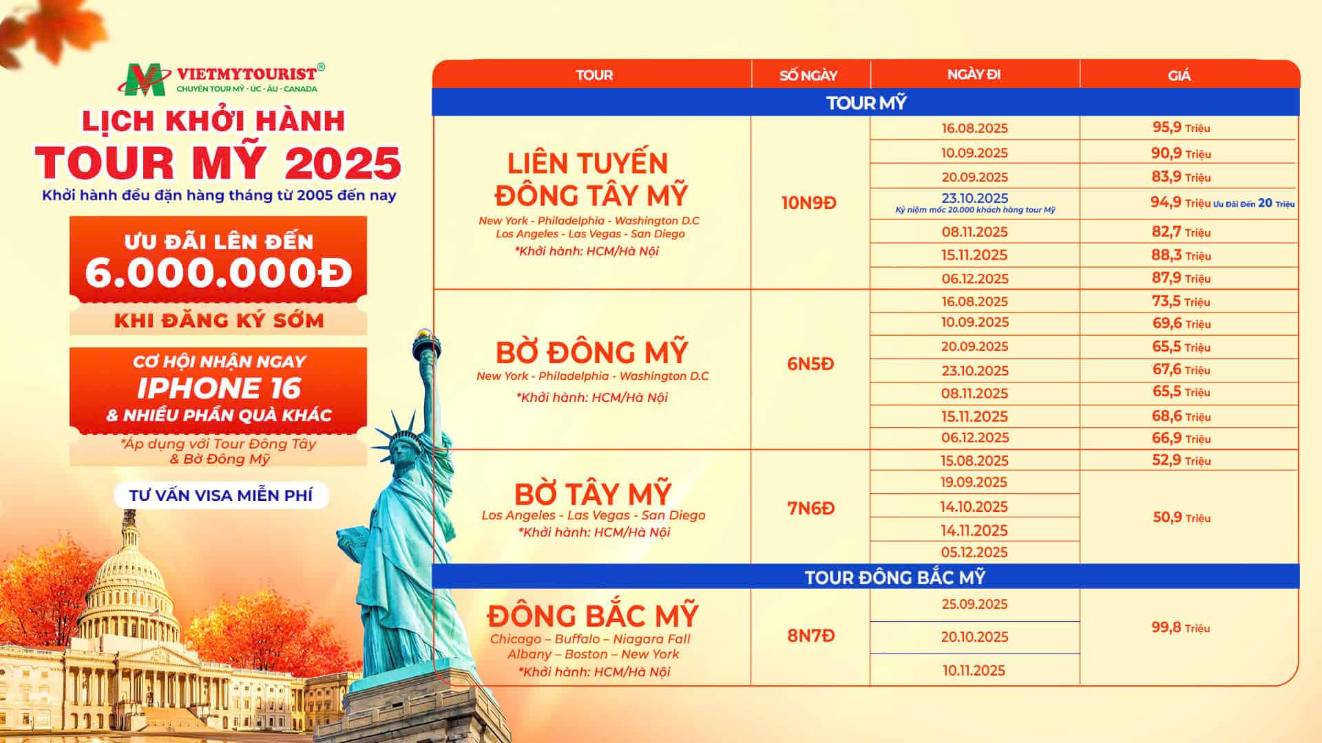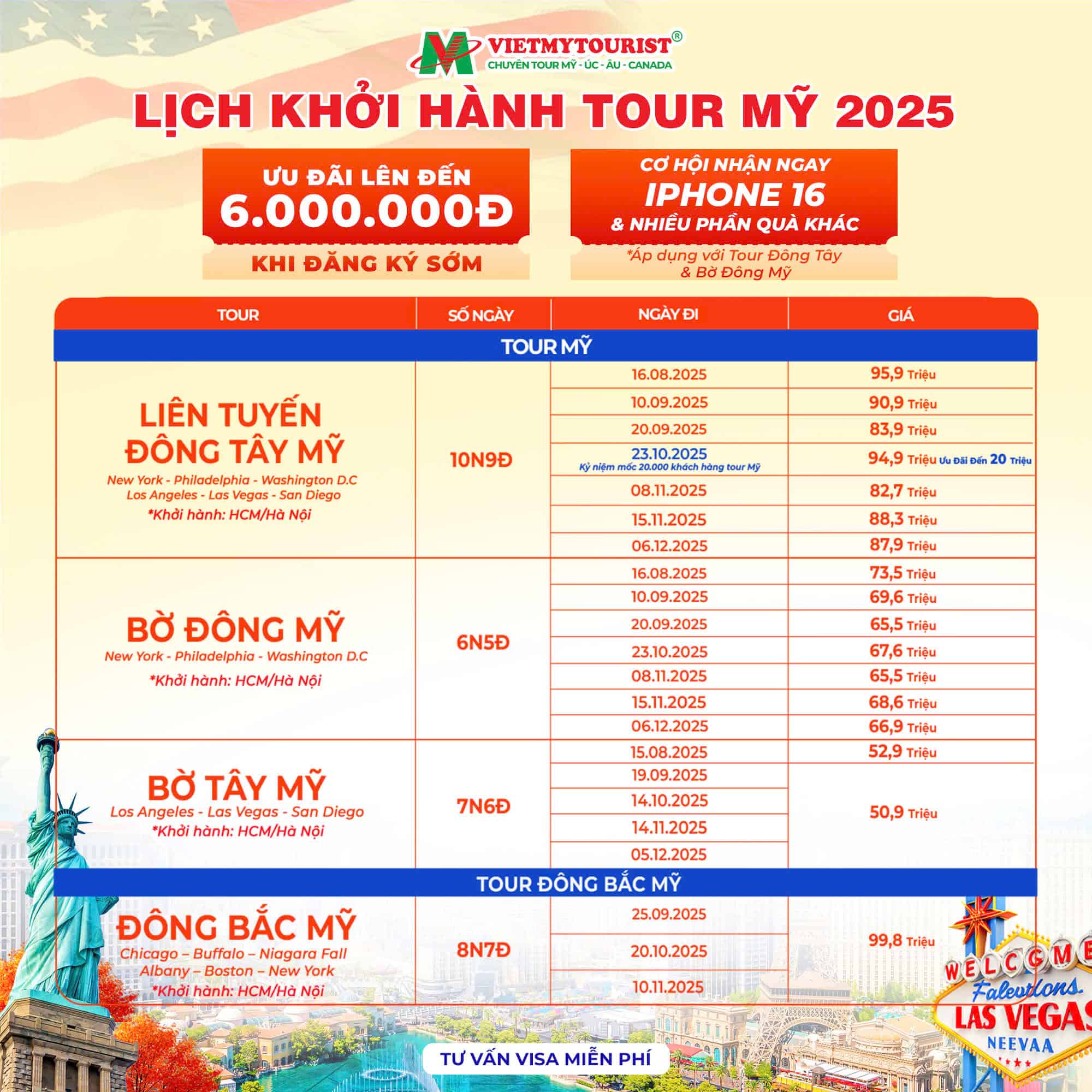 Tour Mỹ Bờ Đông | Khởi Hành 14/02/2026 (27 Tết)