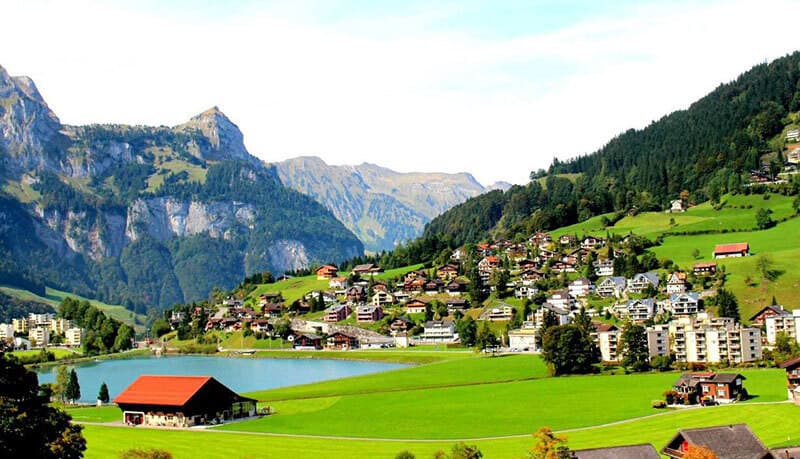Engelberg : Thành phố “Núi thiên thần”, nơi có núi tuyết Titlis nổi tiếng. Thành phố Engelberg chỉ có khoảng vài trăm căn nhà nhưng mỗi căn nhà đều có lối kiến trúc độc đáo và mang một vẻ đẹp khác nhau. Người ta nói mùa thu mà đi qua đây giống như đi qua cõi thiên đường bởi sự kết hợp hài hòa, tinh tế giữa thiên nhiên và con người, giữa những thảm cỏ xanh dưới chân dãy Alps hùng vĩ với những ngôi nhà gỗ sồi nằm bình yên bên sông. Tham quan: