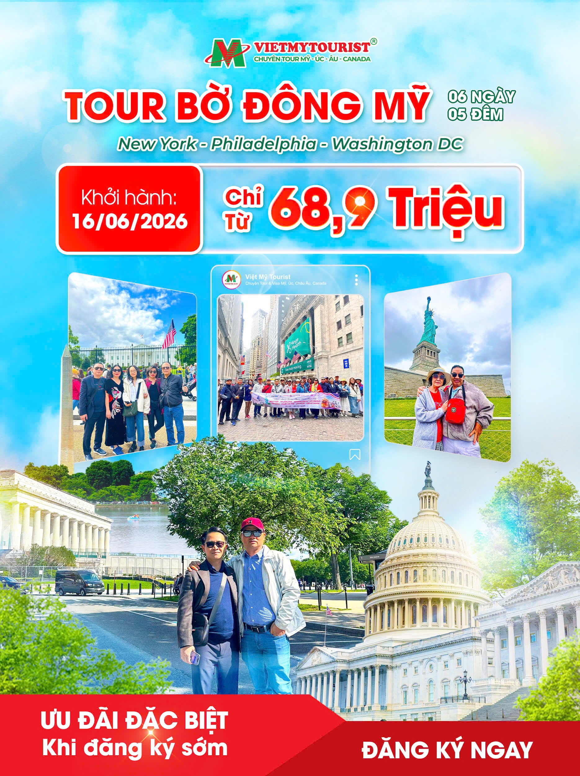 Tháng 6 – Chạm mùa hè nước Mỹ rực rỡ! Cùng Việt Mỹ Tourist khám phá hành trình Bờ Đông Mỹ 6N5Đ, đón nắng vàng, trải trải nghiệm bất tận và cảm xúc trọn vẹn qua các thành phố New York – Philadelphia – Washington D.C.
